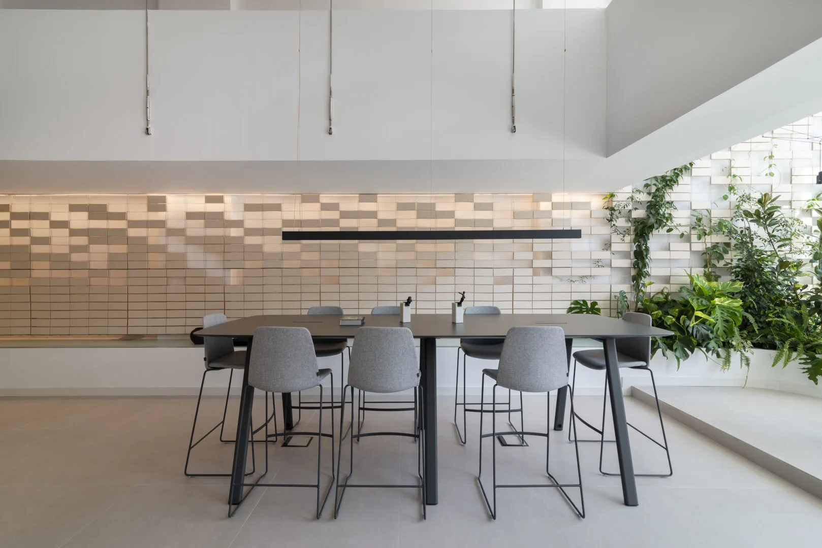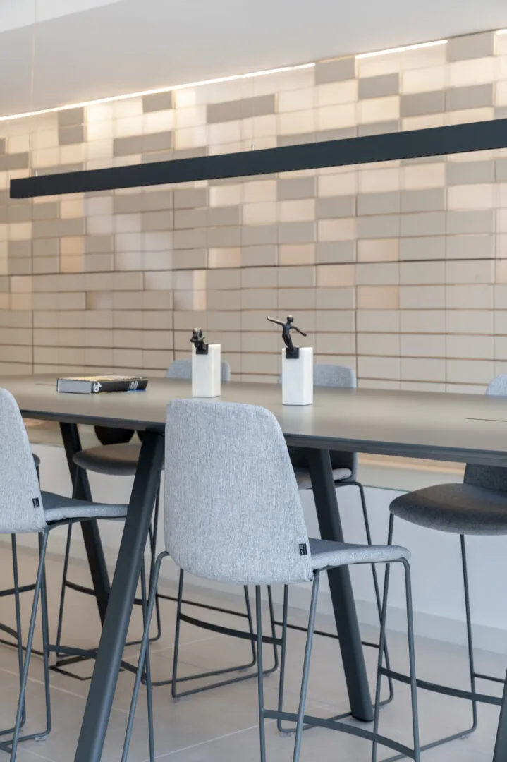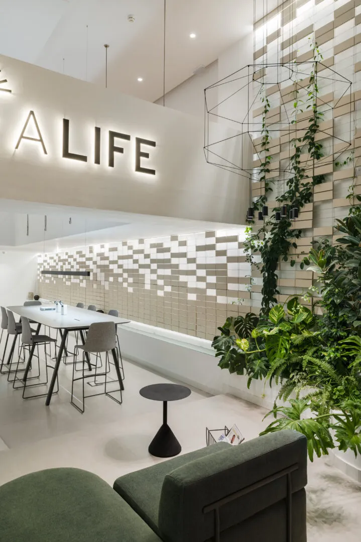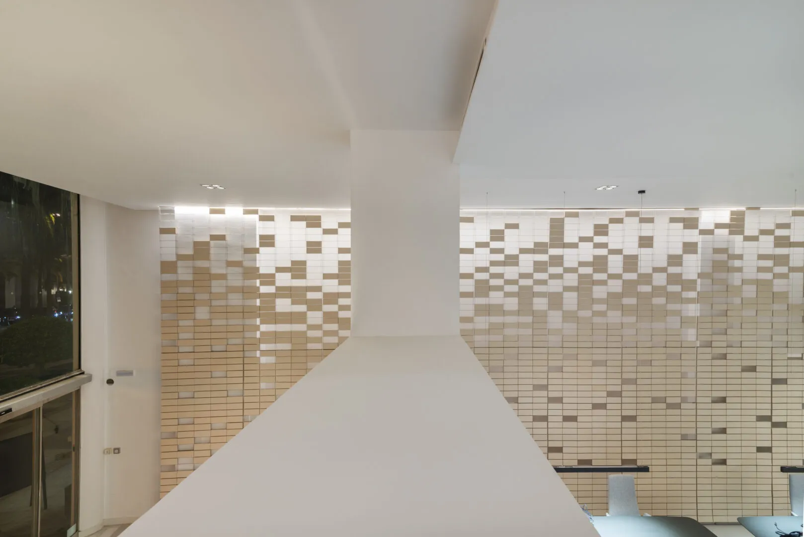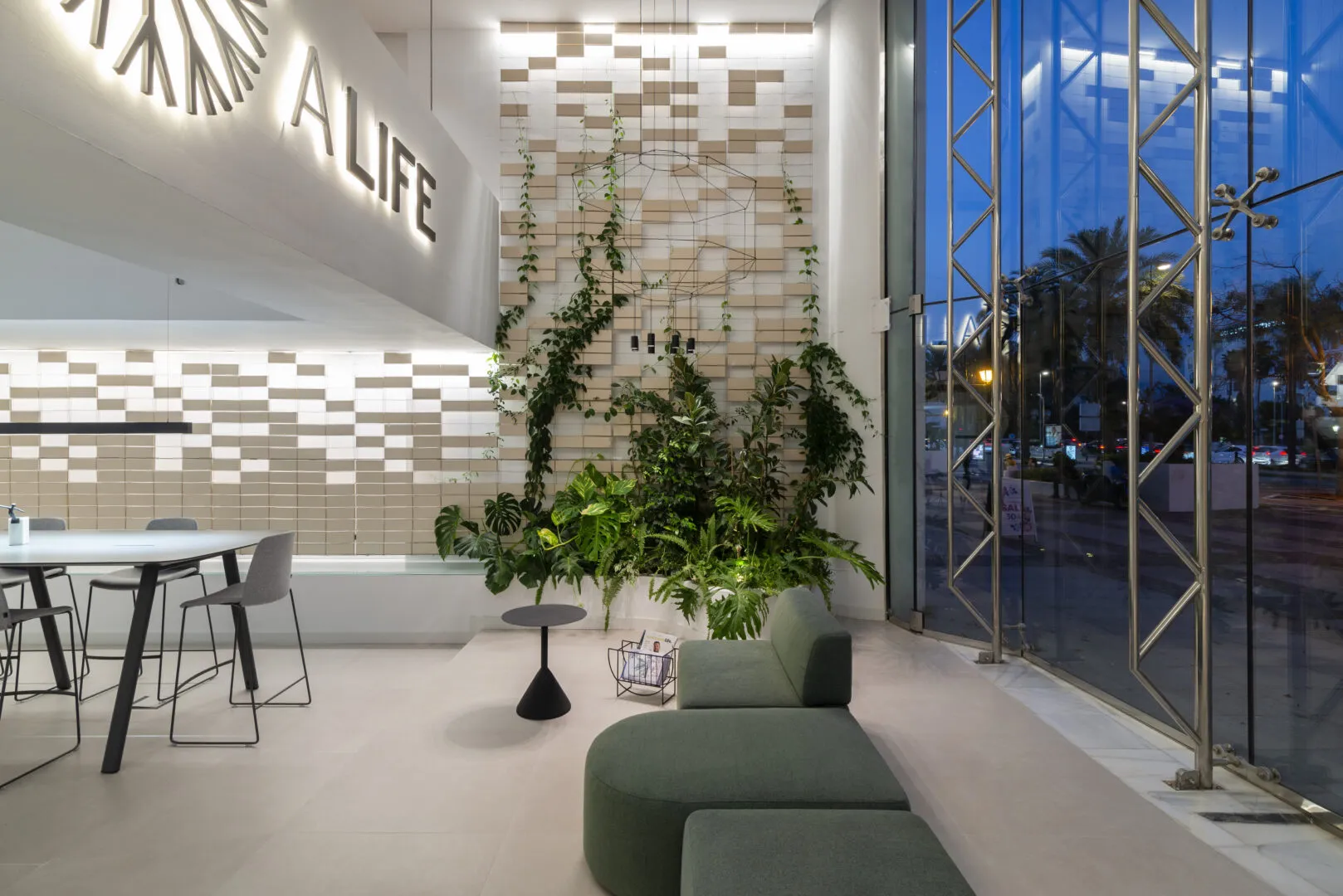 Proyecto de Interiorismo de oficinas, ubicadas en la prestigiosa Avenida José Banus, en Puerto Banús, Marbella, en dónde se incorporan elementos compositivos tradicionales de andalucía como la celosía, el barro y el patio interior, pero con un original y nuevo lenguaje de arquitectura de interiores. Formas contemporáneas, líneas rectas y decoración coherente con el proyecto general, ayudan a que el programa sea completado de forma funcional, pero sin dejar indiferente al peatón que camina hacia al puerto, aún más si cabe durante la noche, con un juego de llenos/vacíos retroiluminados.
