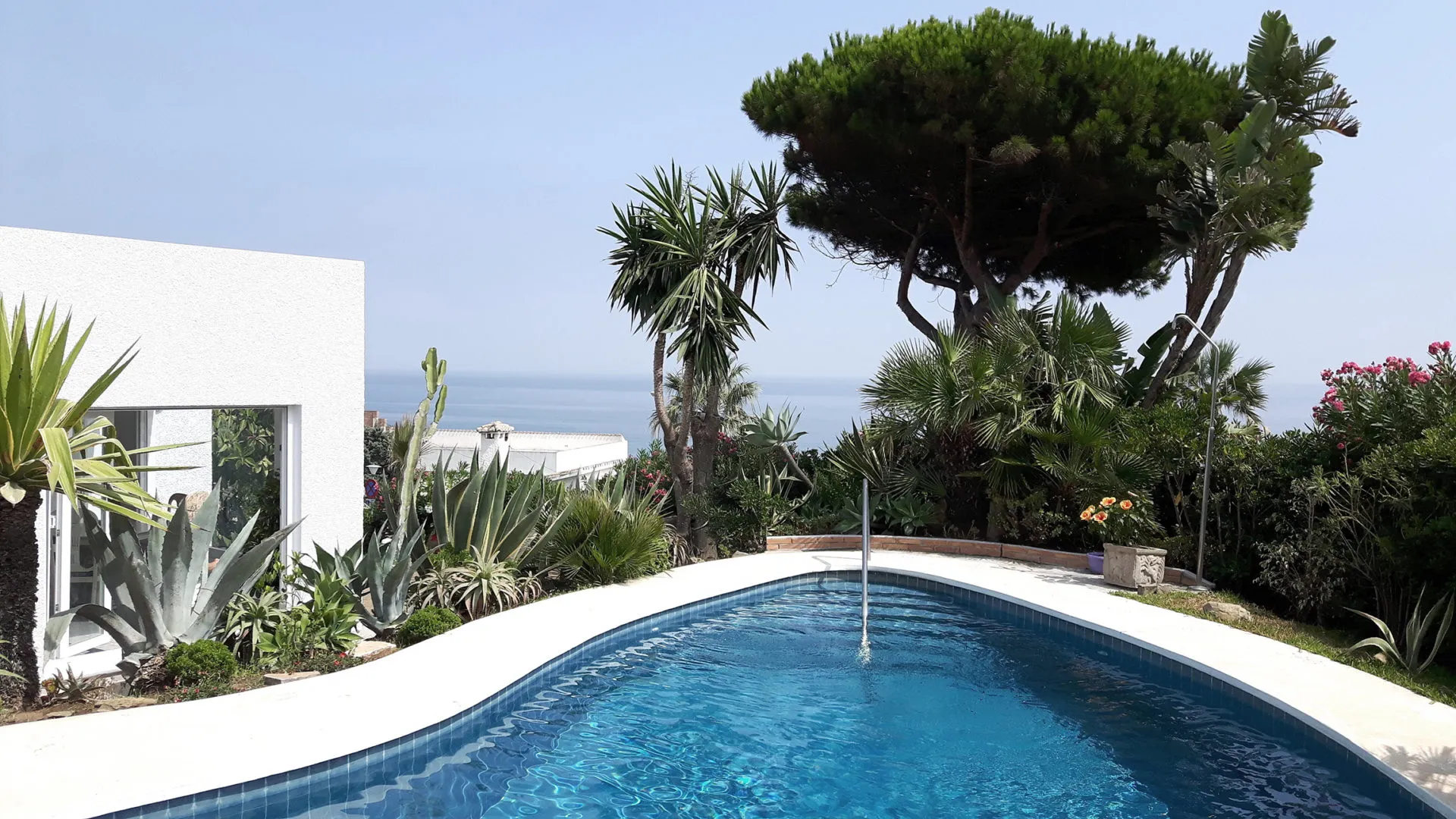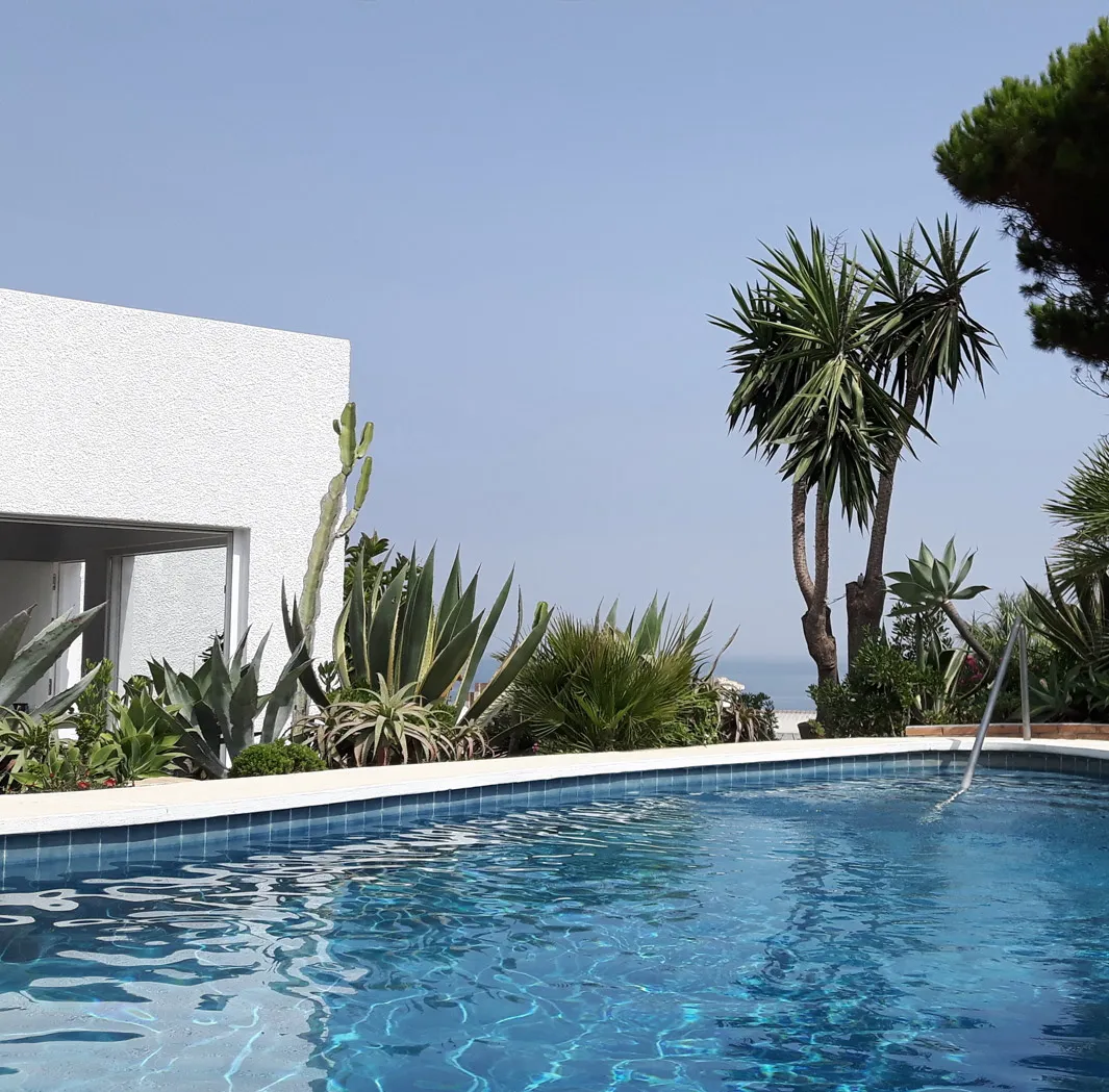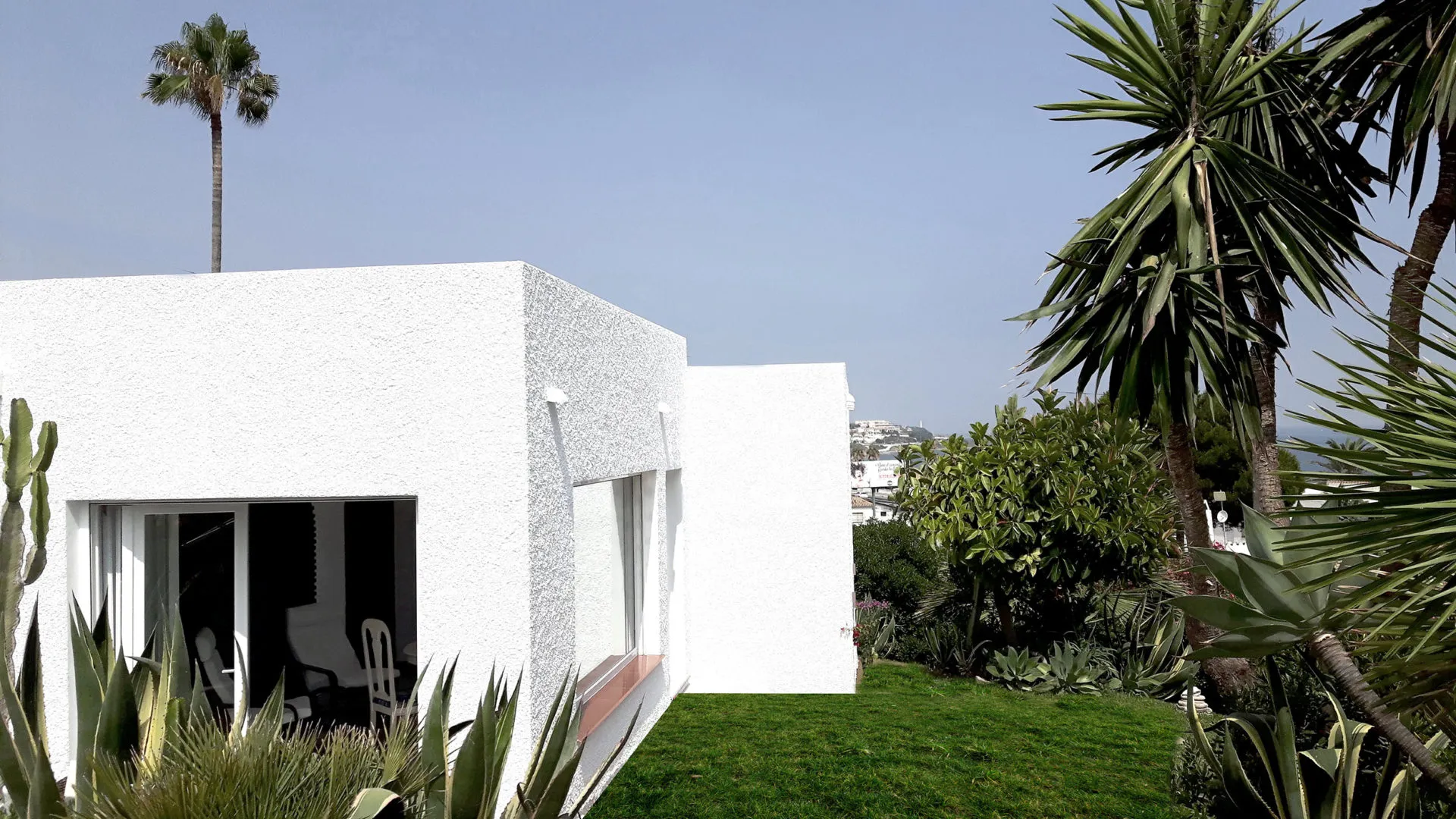 Vivienda residencial de “estilo Ibicenco”, con volúmenes puros en estrecha relación con el jardín, y espacios interiores abiertos.