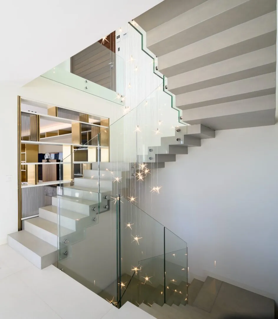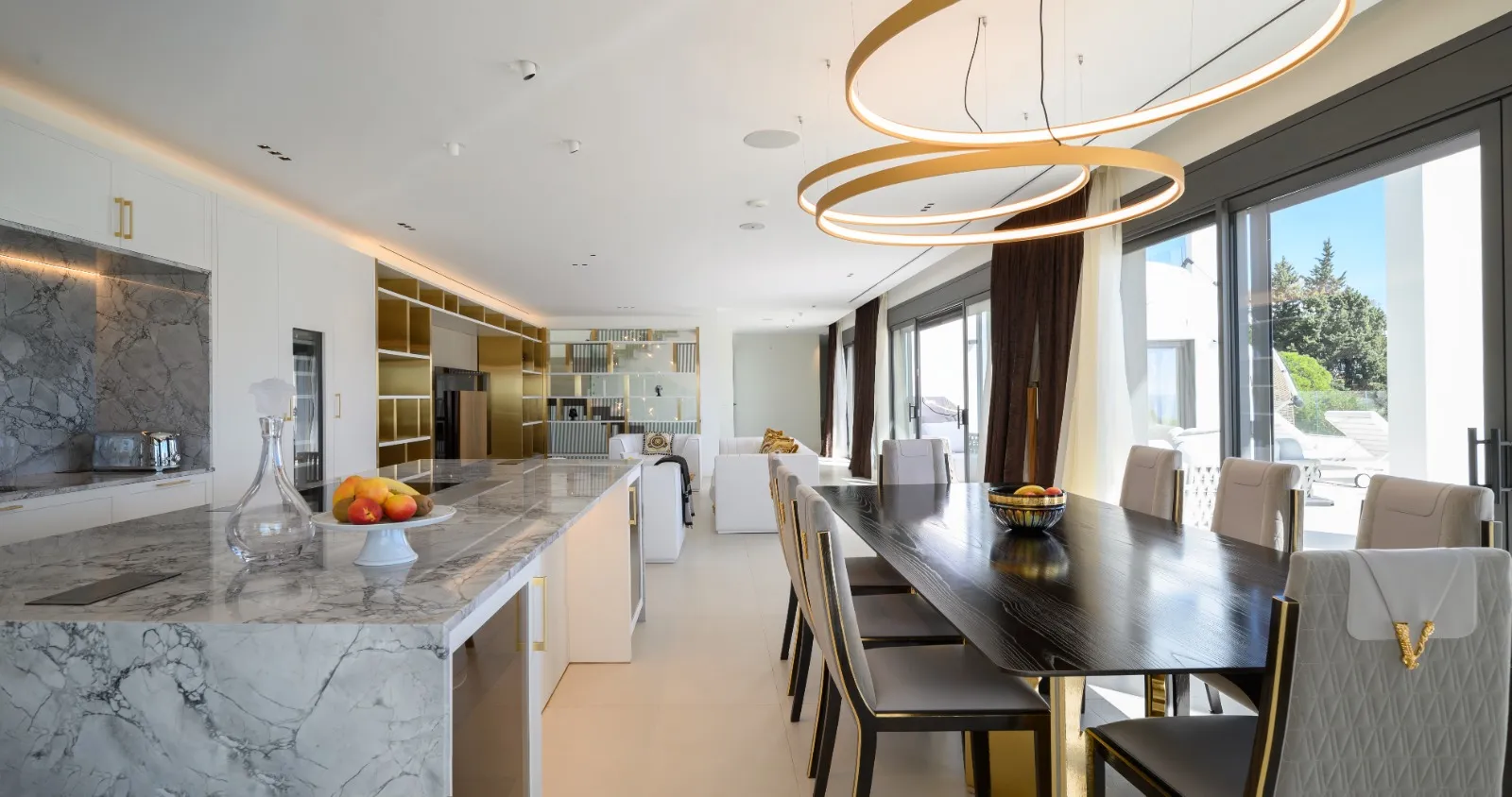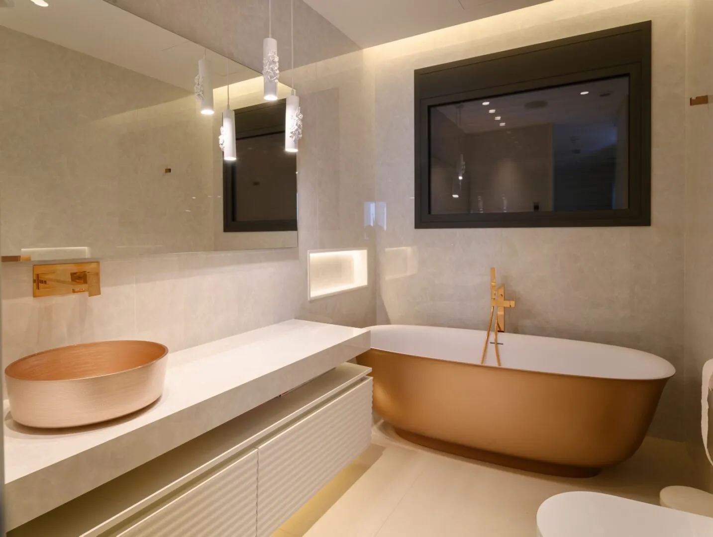 Diseño con personalidad, cambiante según los espacios interiores y sus funcionalidades, en dónde por momentos busca el contraste entre los mismos para que la decoración no pase desapercibida. Desde la entrada con mosaico de piedra natural italiano hasta los baños con piezas de gran formato, las mejores griferías y sanitarios del mercado y la iluminación de destaque, hacen que cada espacio sea una experiencia distinta. La piscina, sus espacios exteriores y sus espectaculares vistas al Mar Mediterráneo generan que esta casa, sea única por dónde se mire.